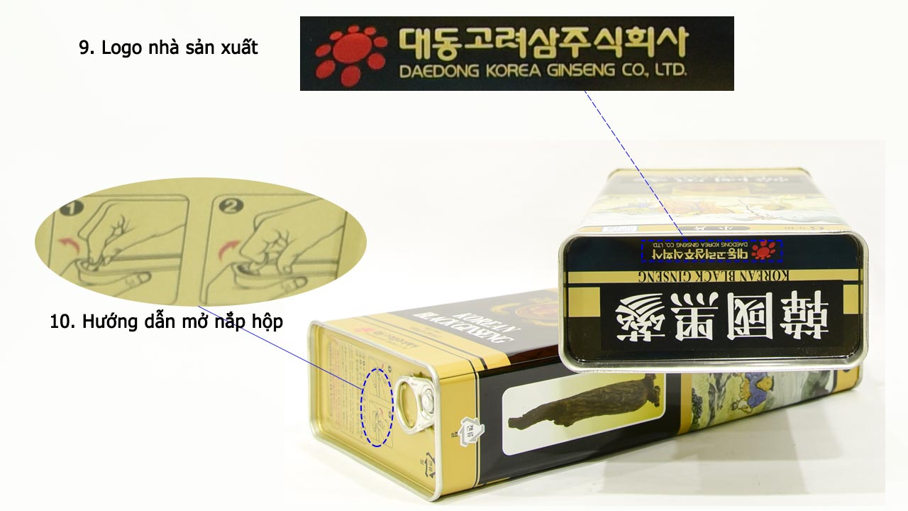 Các sản phẩm sâm củ khô của Daedong có đóng dấu lên tem nhà sản xuất trên tem có ghi số lô sản xuất để phân biệt nguồn gốc và chống hàng giả